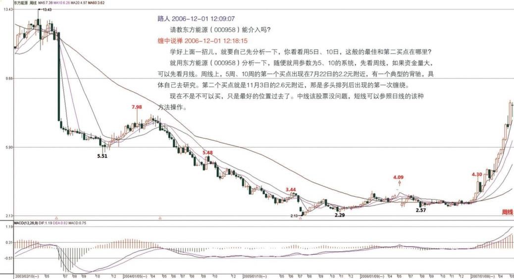 各位注意:本 ID 告诉你的是最佳买点如何判断,并不是说除了这两个点就不能买,但那要承受更大的风险,而要长期成功,就要尽量学会把风险控制到最低。还有,这只是一招儿,绝不能光靠这一招儿,但如果连一招儿都学不会,后面那些招儿怎么学?(2006-12-01 12:30:55)