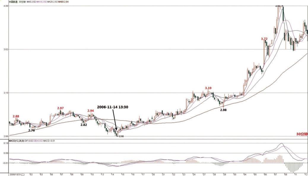 短线最多就看 30 分钟图,你看 1 日 10:30,是不是一个典型的第一类卖点?好好研究一下图。(2006-12-06 16:36:57)