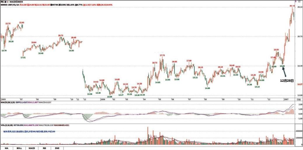 现在已经 11 元多了?关键不是涨了多少,而是你是否按规程操作了。你现在看只有 15%的涨幅,明天拉起来可能一下儿就 30%了,持有要有耐心,除非卖点出现,否则不能乱动。但一旦卖点出现,就必须离开。