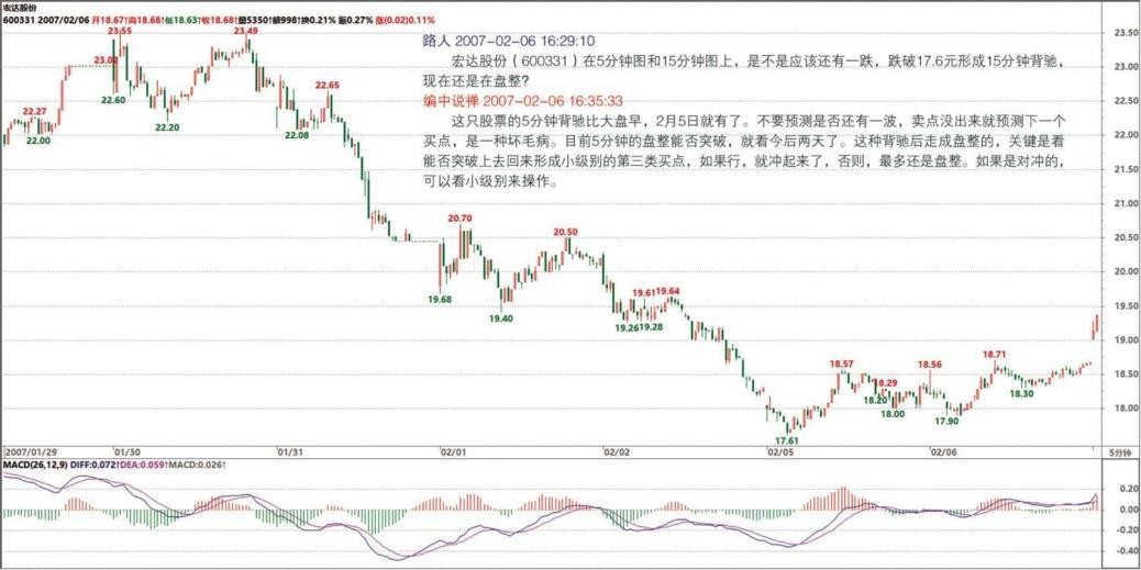 分钟级别相反的走势类型,不一定是 5 分钟的。另外,关键力度的问题,以前都回答过了,就是要编一套新的指标,这是最精确的,但一般人根本不行,所以用 MACD 指标就可以了。其他问题,主要是你还没把前面的内容消化好。