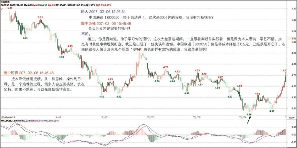 没人让你整天用 1 分钟的指标,5 分钟的肯定比手续费多多了。而且,这还要综合看,如果是在 30 分钟跌势的背驰段,那 1 分钟的背驰可能就构成精确的底部,这时候就不能够因为是 1 分钟的而忽视了。(2007-02-06 21:47:49)