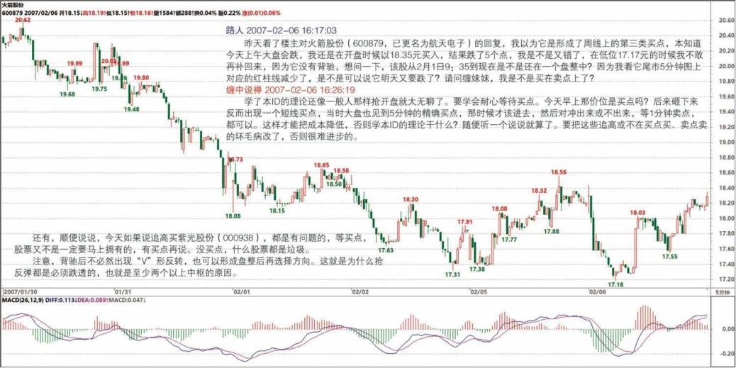 为什么前两天背驰的时候不买?关键是对走势的理解还不深,“学如不及,犹恐失之”。(2007-02-08 16:05:15)
