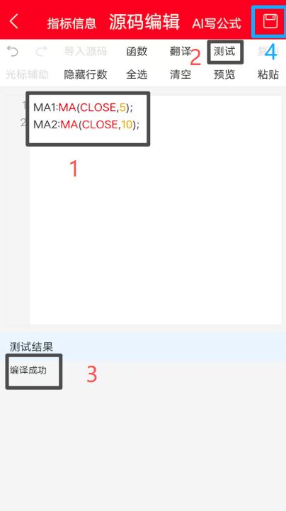 按照下面标记的步骤,先粘贴或编写源码,然后点击“测试”,测试通过后点击蓝色框的保存即可。